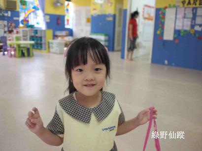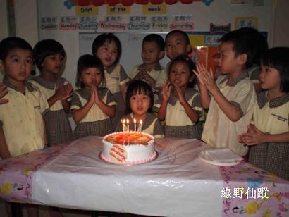第一次在學校慶祝生日,妹妹樂開懷。
