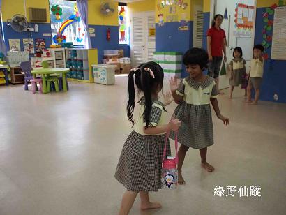 妹妹走出課室,印籍好友追到大門口,再次Hi-5說拜拜。